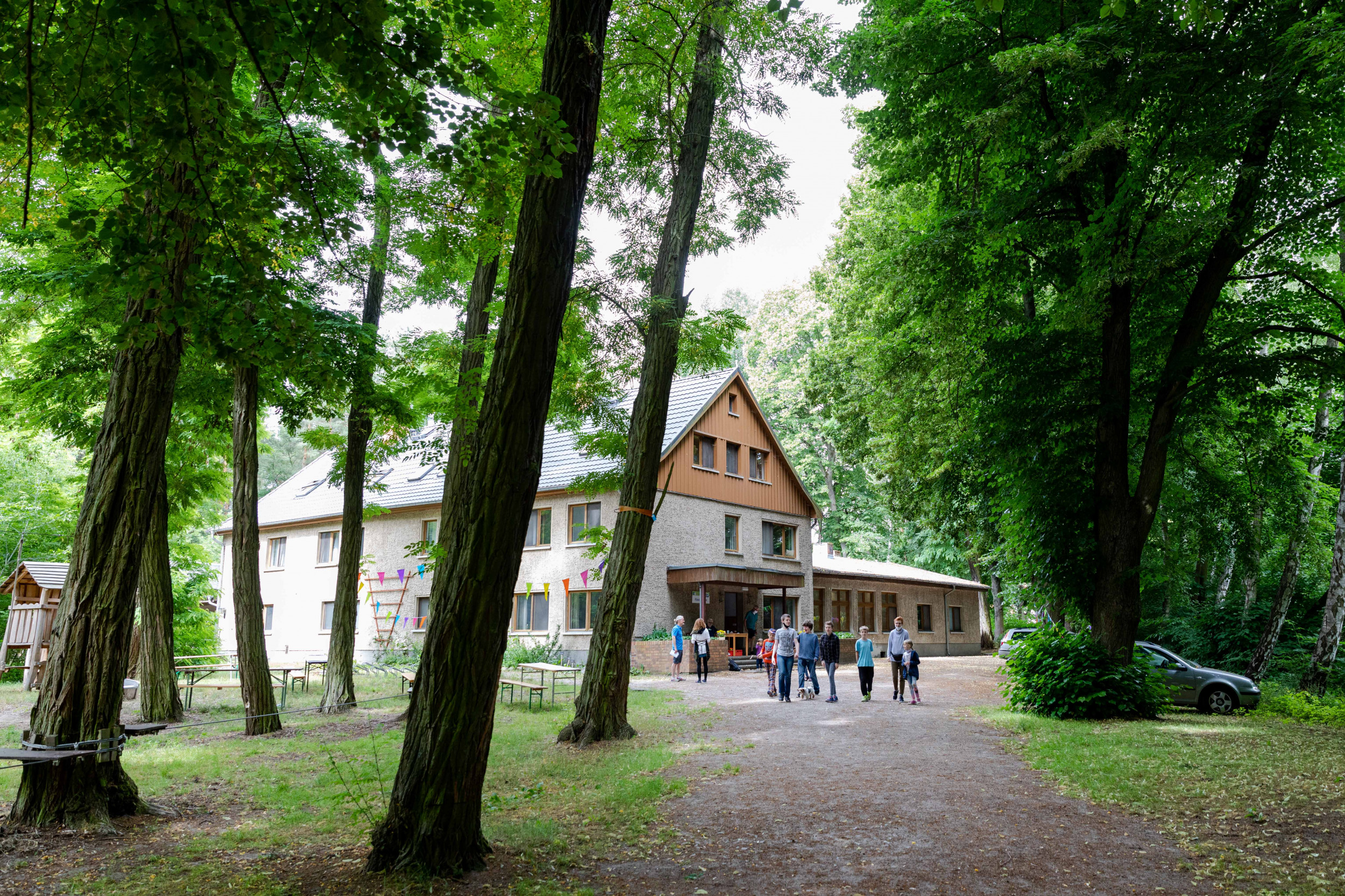 bietet das große Gelände viel Platz für Gruppen. Es stehen 51 Betten, Gruppenräume, eine Großküche zur Selbstversorgung und ein Speise-/Veranstaltungssaal zur Verfügung.